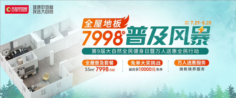 在本次紅星818FUN肆嗨購節(jié)中,大自然家居也重磅推出四大優(yōu)惠活動:第九屆大自然家居全民健身活動,大自然地板“板小俠”萬人送惠服務(wù),大自然家居全屋地板普及風暴,萬元免單大獎挑戰(zhàn)活動。