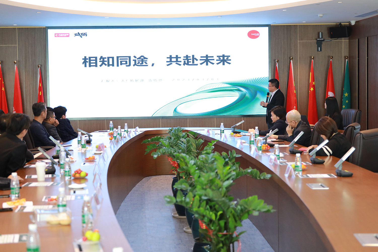 會前,大自然家居集團(tuán)品牌部經(jīng)理呂健帶領(lǐng)湛江設(shè)計(jì)力量團(tuán)隊(duì)參觀了大自然11樓文化展廳,并詳細(xì)介紹了大自然家居的發(fā)展歷程、企業(yè)文化,湛江設(shè)計(jì)力量團(tuán)隊(duì)對大自然家居的企業(yè)文化理念與內(nèi)涵表示了高度的認(rèn)可與贊許。