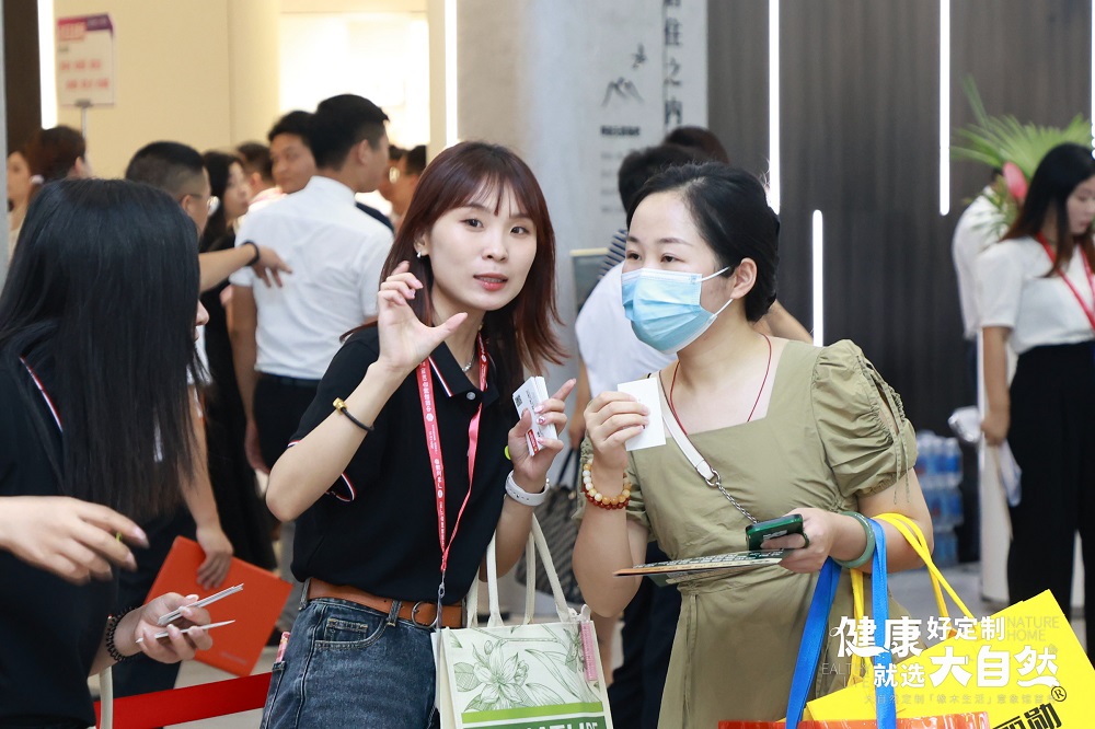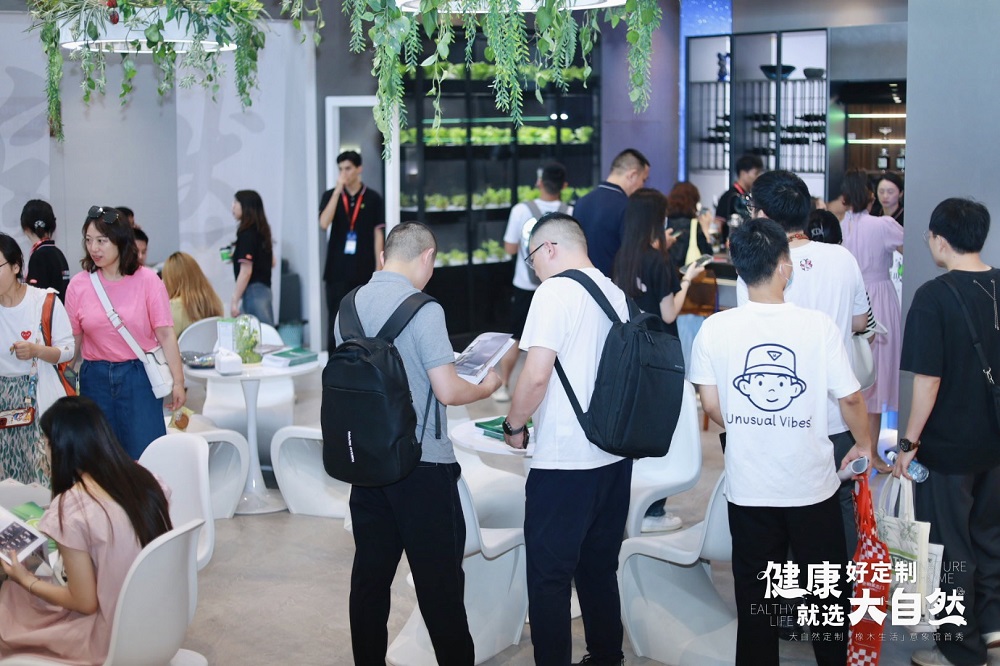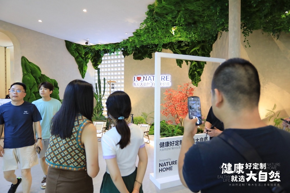 建博會期間,大自然家居攜500+㎡「橡木生活」意象館 | 地門墻柜一體健康整家定制形象亮相,廣受好評?,F場人氣超預期火爆,超額實現招商目標。