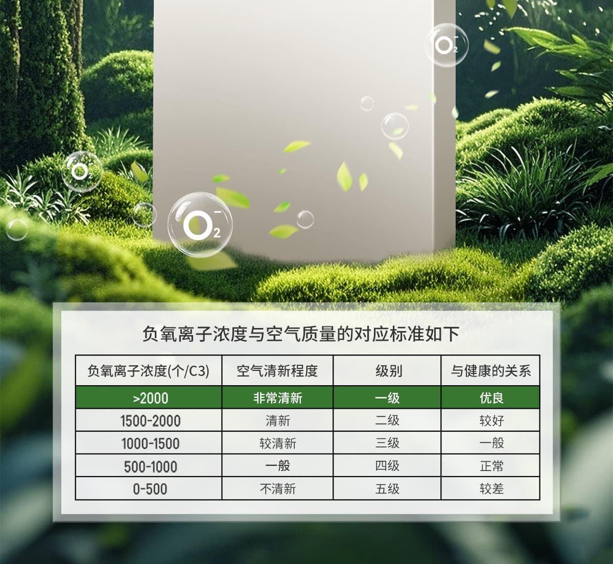 | 誘發(fā)空氣負(fù)離子量 | 比基礎(chǔ)環(huán)境提高10倍+ |