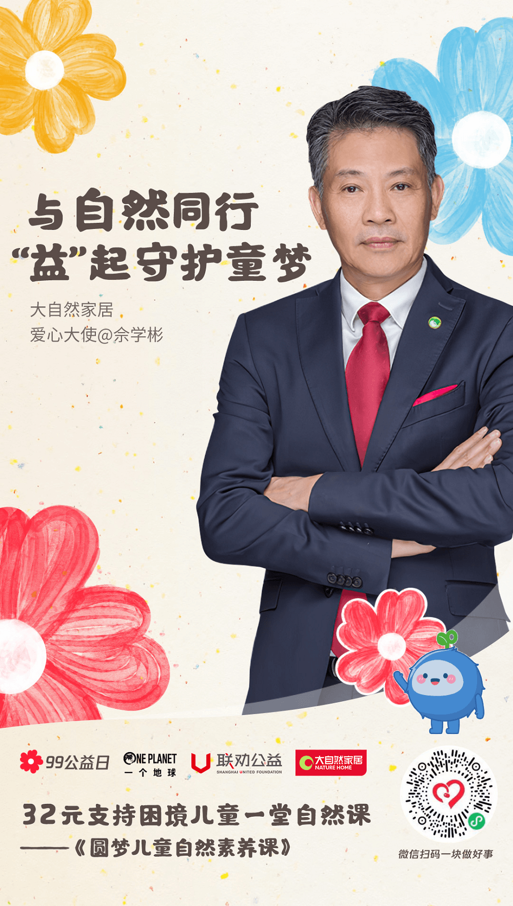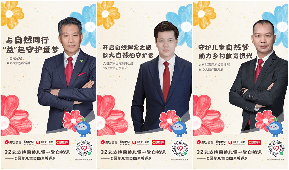 一分善意,萬分有力。近日,由騰訊公益率先發(fā)起的99公益日正在火熱進行中。作為今年99公益日參與企業(yè)之一,大自然家居積極參與99公益日行動,由大自然家居集團董事長佘學彬親自擔任愛心大使,同時廣泛發(fā)動事業(yè)部團隊、社會各界人士進行籌集善款,呼吁共同關(guān)注、守護困境兒童的健康學習成長。