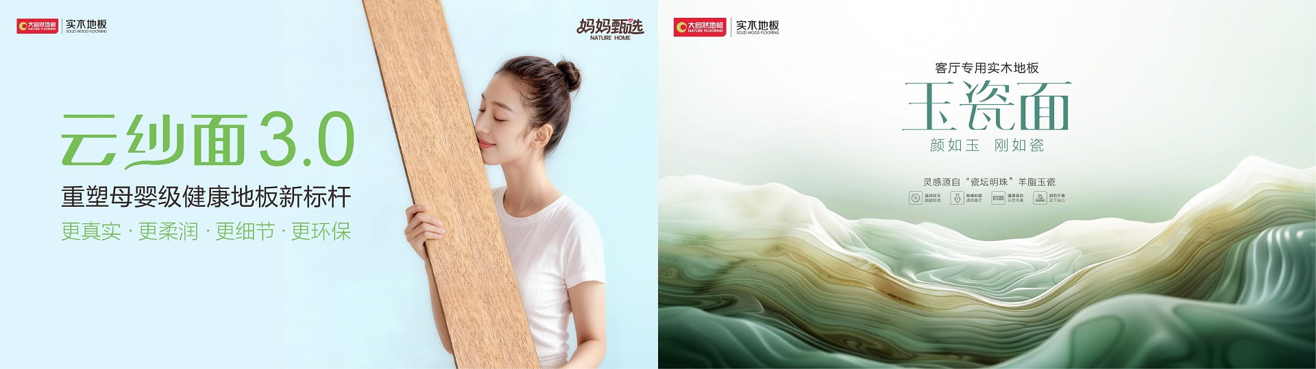 大自然深刻洞察新生代消費(fèi)者對(duì)家居美學(xué)與健康的需求。隨著消費(fèi)升級(jí),健康、美觀、便捷成為家庭家居的核心訴求,大自然家居精準(zhǔn)捕捉這一趨勢(shì),深耕健康家居領(lǐng)域,推出云紗面、玉瓷面等優(yōu)質(zhì)表面工藝,搭配零感薄涂技術(shù),既保證了地板的細(xì)膩質(zhì)感,又實(shí)現(xiàn)了健康環(huán)保無(wú)異味。