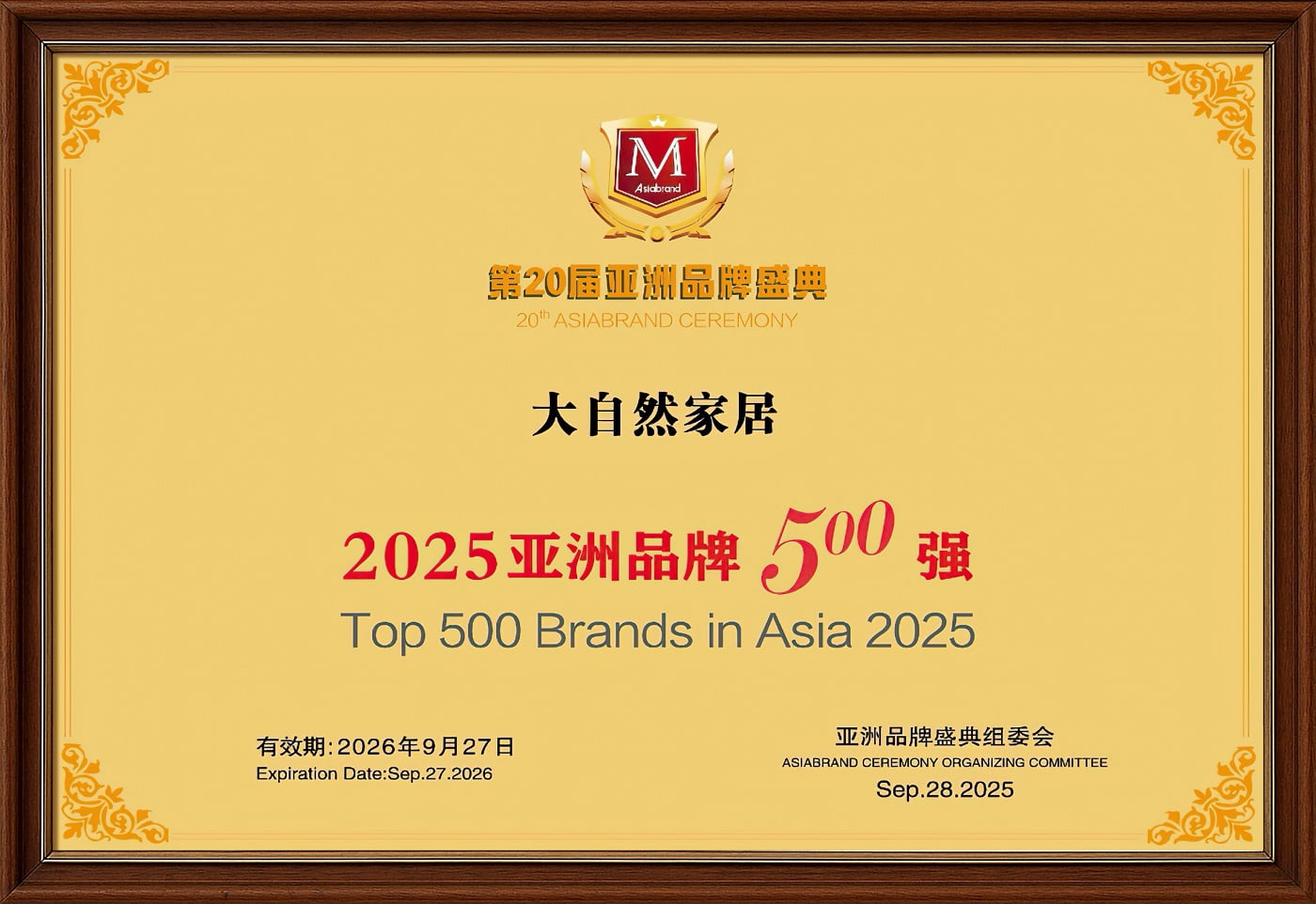同時(shí),憑借深厚的品牌積淀與卓越的市場(chǎng)表現(xiàn),大自然家居躋身亞洲品牌500強(qiáng),這份榮譽(yù)是品牌實(shí)力的硬核見證,更是千萬(wàn)消費(fèi)者口碑的長(zhǎng)期沉淀,成為品牌穿越周期的堅(jiān)實(shí)底氣。
