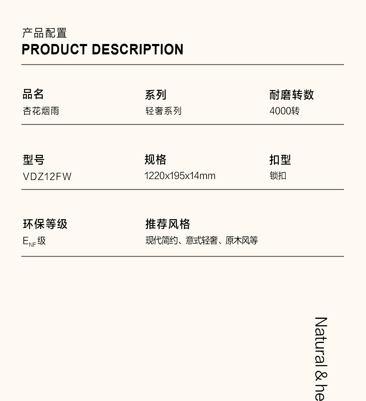 產(chǎn)品名稱/型號 杏花煙雨VDZ12FW