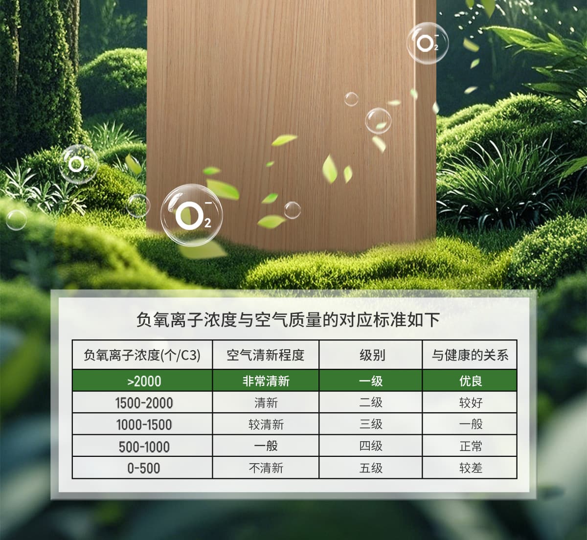 誘發(fā)空氣負離子量 比基礎(chǔ)環(huán)境提高10倍+